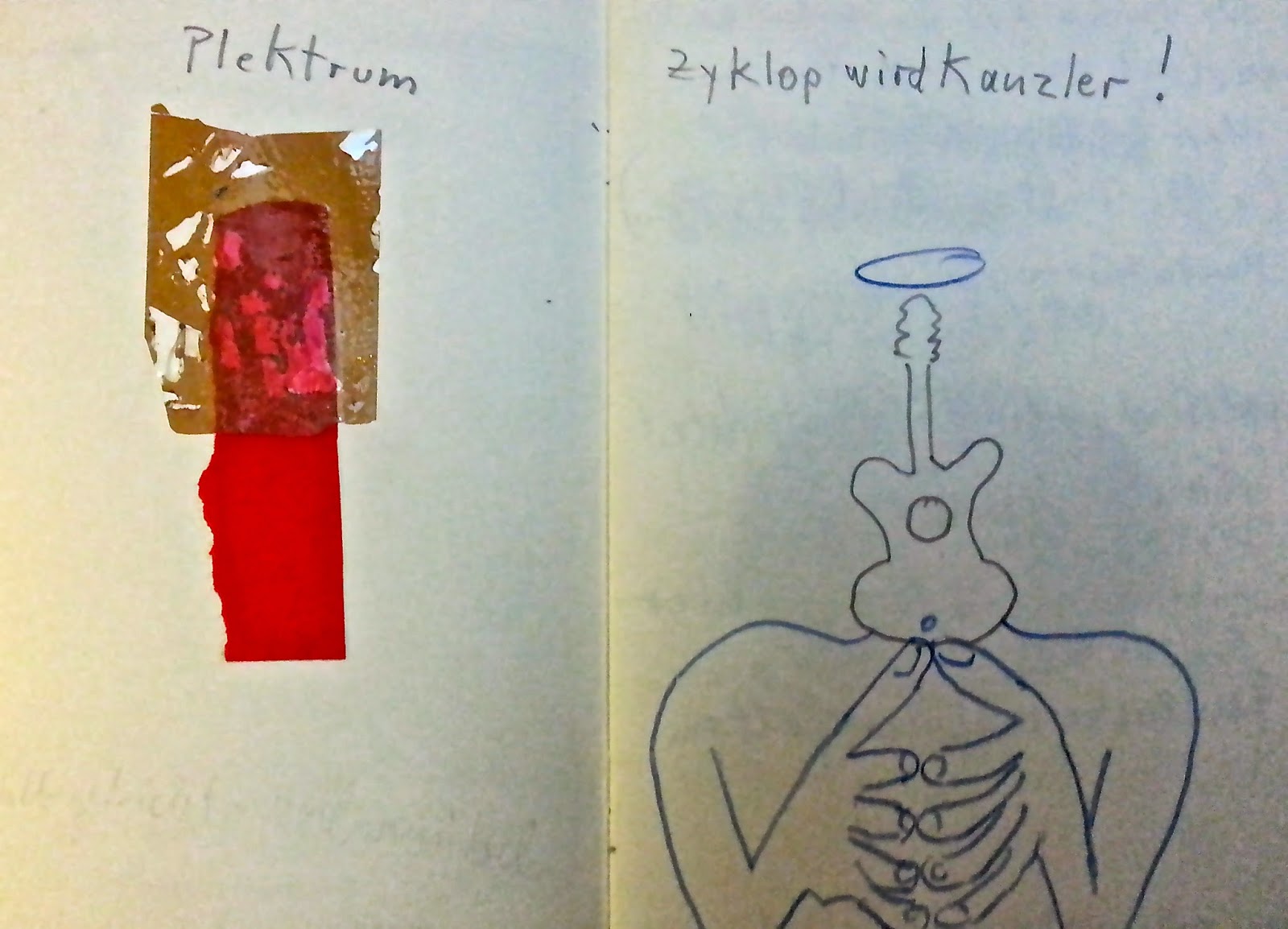 Das Tier seufzt. Es räkelt sich. Nicht wohlig. Das Tier. Will. An. Die. MACHT. ("Das macht doch nichts."). Da sitzt schon der Zyklop. Claus oder Frau? (Die Frau hat keinen Namen. ) Sie IST. Pur. Und ohn-MÄCHTIG. Deshalb muss die Frau, die die Macht hat, ein Zyklop sein, der das Tier trifft. Mit einem einzigen Schuss. Was ist ein Zyklop? Mit einem Auge sieht man besser! ("Mit der Zyklop-Speed-Knarre haben Sie fünf Knarrentypen in einer. Sie können nichts mehr verfehlen." "Tricky.") Zyklopen sind gern mit Säufern unterwegs, heißt es. Auf sie trifft das nicht zu. Sie erträgt das bloß. Die Hand von B. auf ihre Schulter. Oder P., der sich über sie beugt. Ihr Griff ist eisern und kühl. Niemand könnte ihr Pathos vorwerfen. Sie bauen auf, die Zyklopen, und tauchen unter. Ihr haftet so gar nichts Fischiges an. Sie steht fest auf ihren starken Beinen. Unbeweglichen Monster gegenüber. Und Claus? Bleibt tierisch. Kein Fisch. Ein Säugetier aus dem Märchenwald. Fiktiv verschont. Er schnarrt seine großen Reden herunter. Die Begegnung von Zyklop (weiblich) und Claus (neutral) bringt den Fort-Schritt. Der Berliner Republik ins 21. Jahrhundert. Rhetorisches Niemandsland. Pur. Ruppig. Sexy.